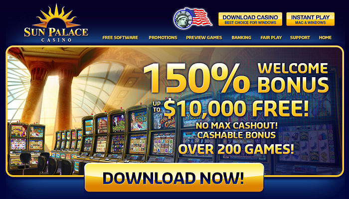 150% Up to $10,000 is FREE only at Sun Palace Casino! Crystal Richie Welcome Bonuses February 25, 2015 0150% BONUS up to $10,000 is giving away by Sun Palace Casino – No Maximum Cashout – Cashable BONUS PLAY...