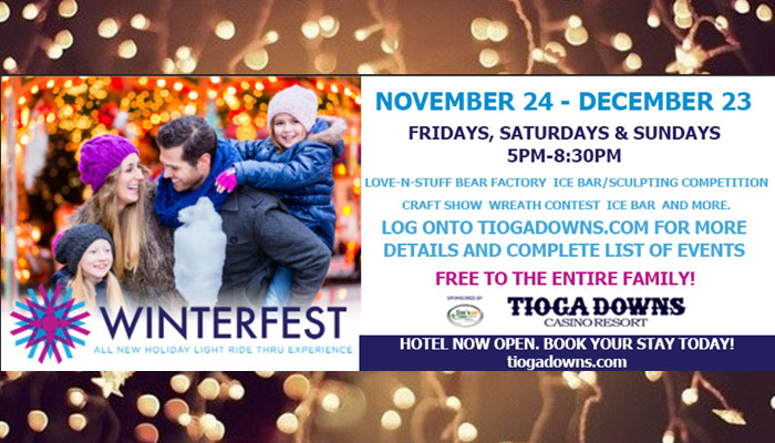 Winterfest to begin at Tioga Downs on Friday Kim M Latest Casino and Gambling News November 22, 2017 0‘Tis the season and for Tioga Downs Casino & Resort, on Friday, November 24 it will be the fourth consecutive...